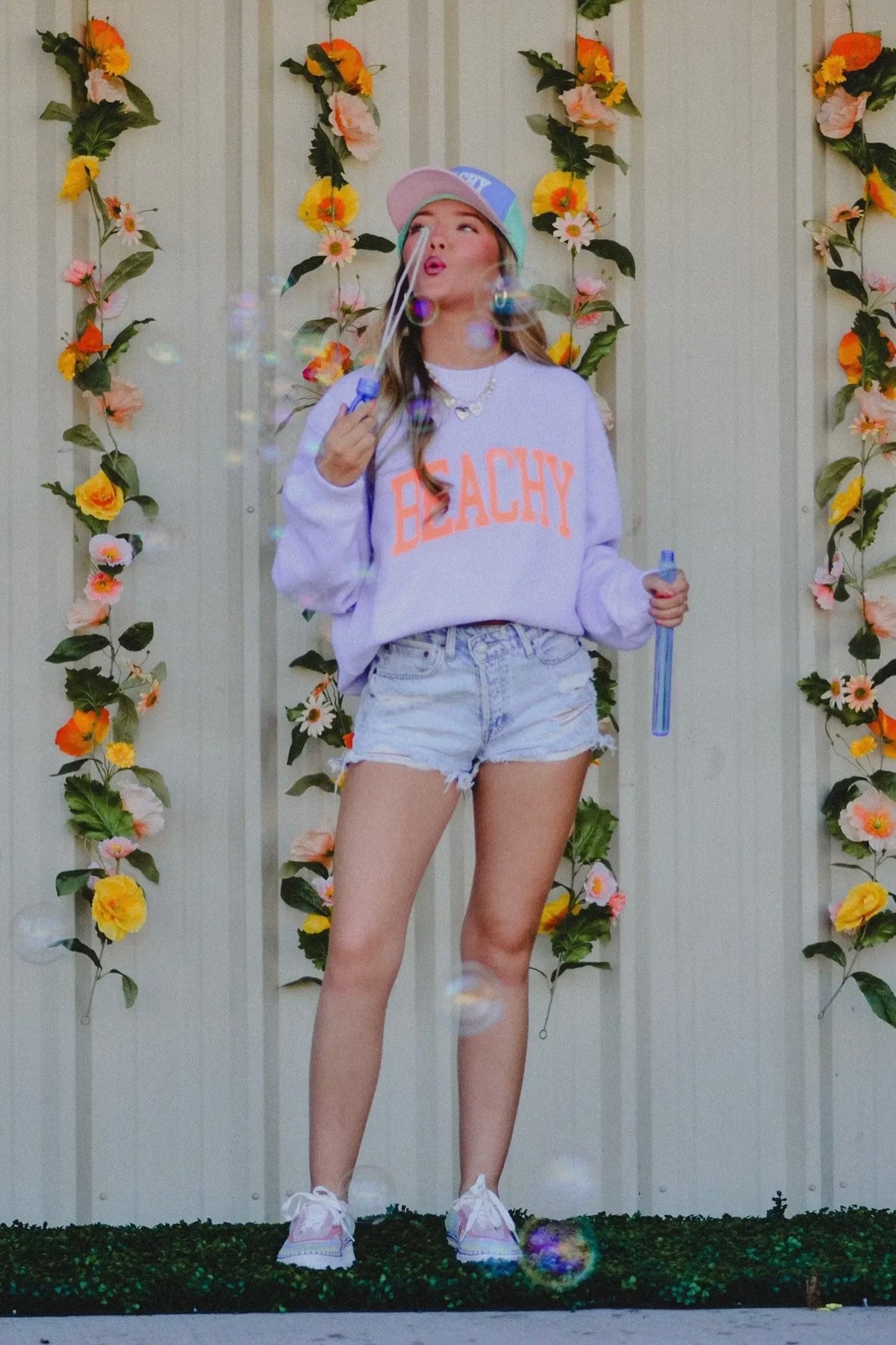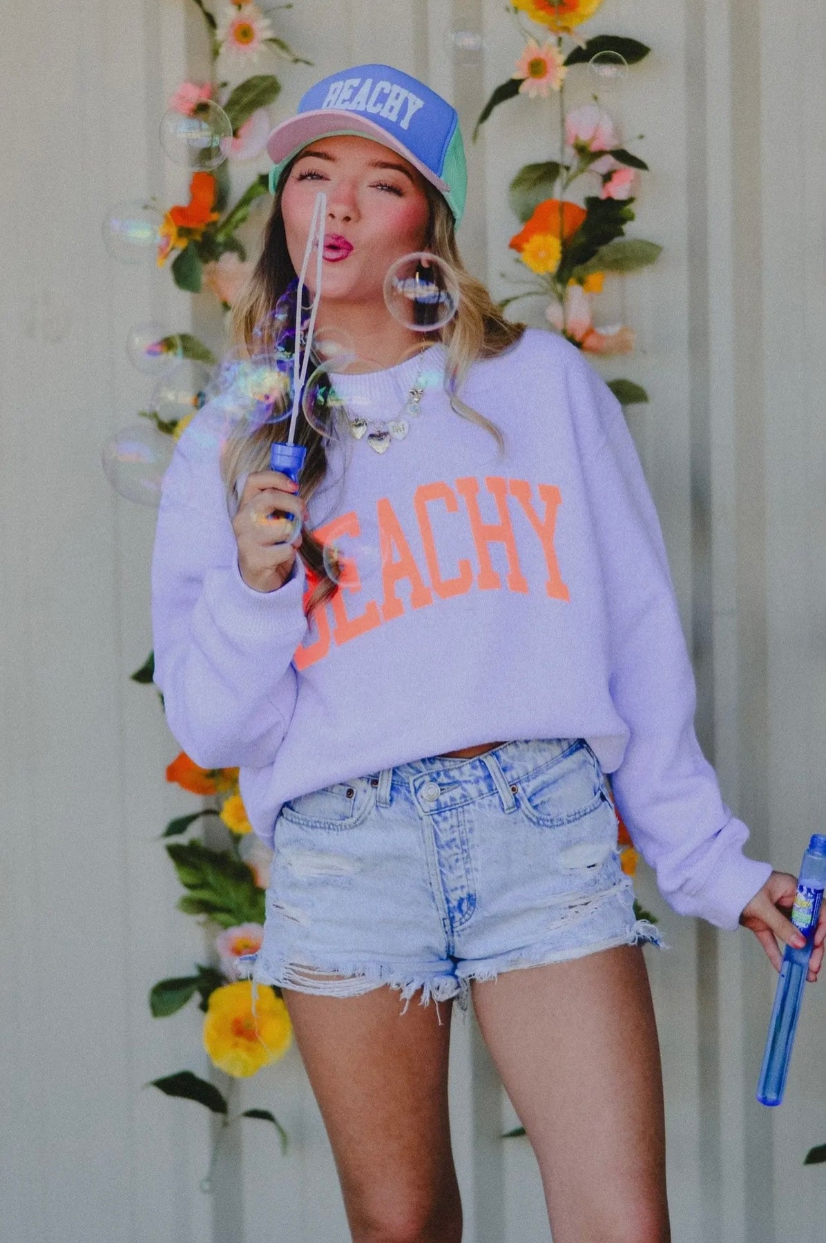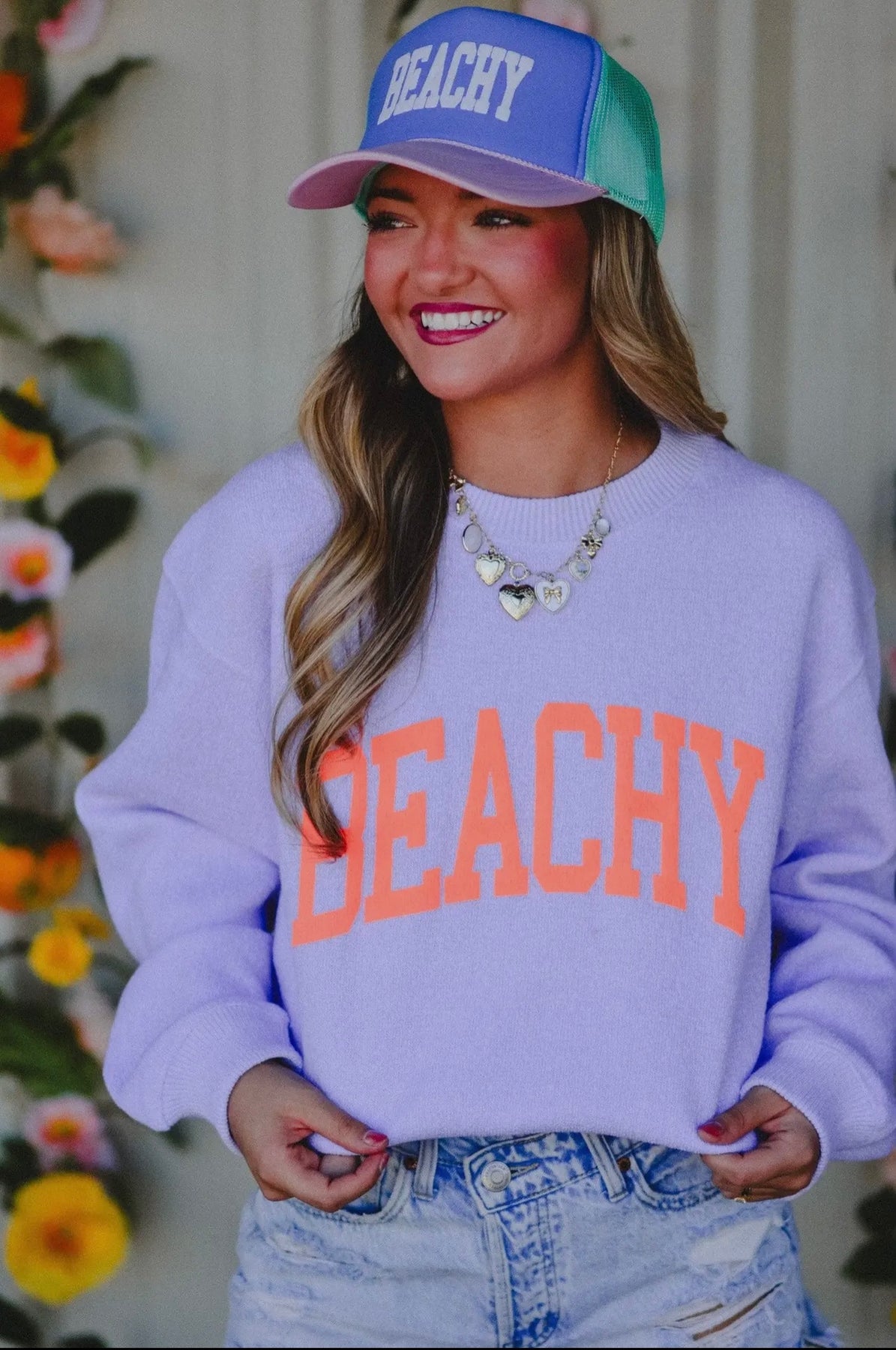 Your favorite knit sweater is now in a Beach Theme! BEACHY graphic on a lavender knit sweater with NEON orange puff. These are so gorgeous in person! Your favorite, softest, sweater on the market perfect for upcoming vacays.