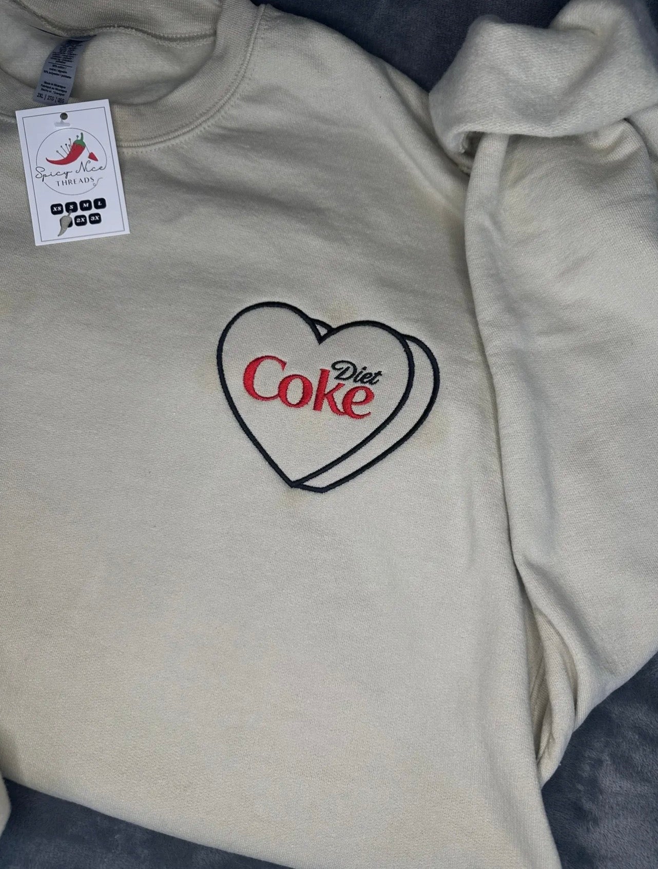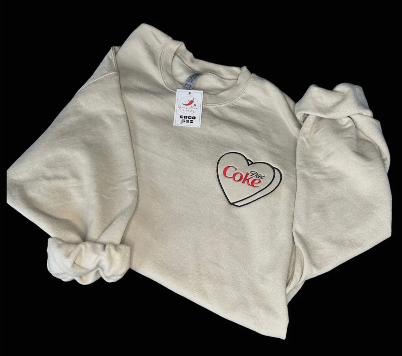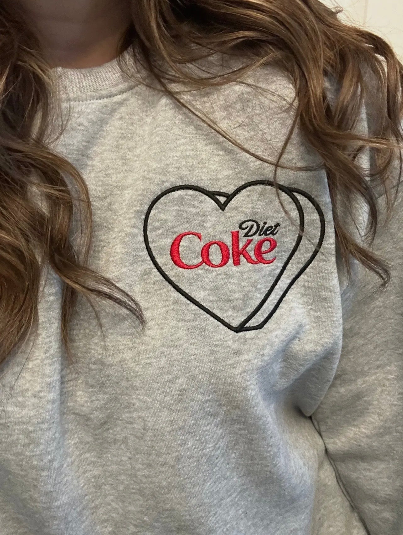 Elevate your casual wardrobe with our exclusive Diet Coke Heart Embroidered Sweatshirt. Crafted with comfort and style in mind, this sweatshirt features a unique heart embroidery adorned with the iconic Diet Coke logo, adding a touch of nostalgia to your everyday look.