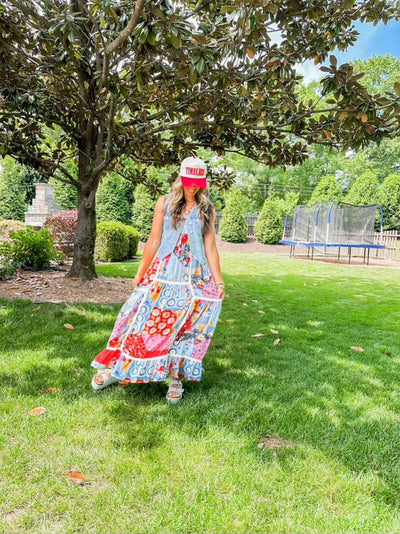 Whether you're searching for a patchwork maxi dress for an upcoming event or looking to add a touch of elegance to your everyday style, this piece delivers both beauty and functionality.