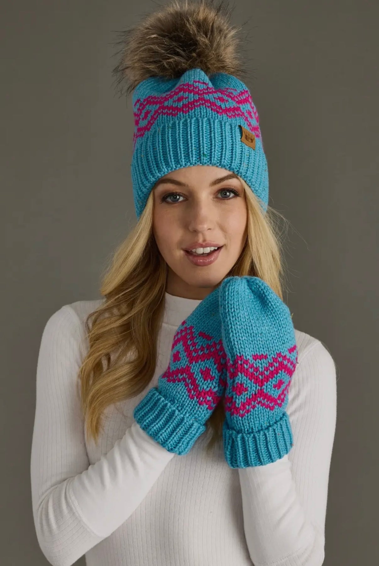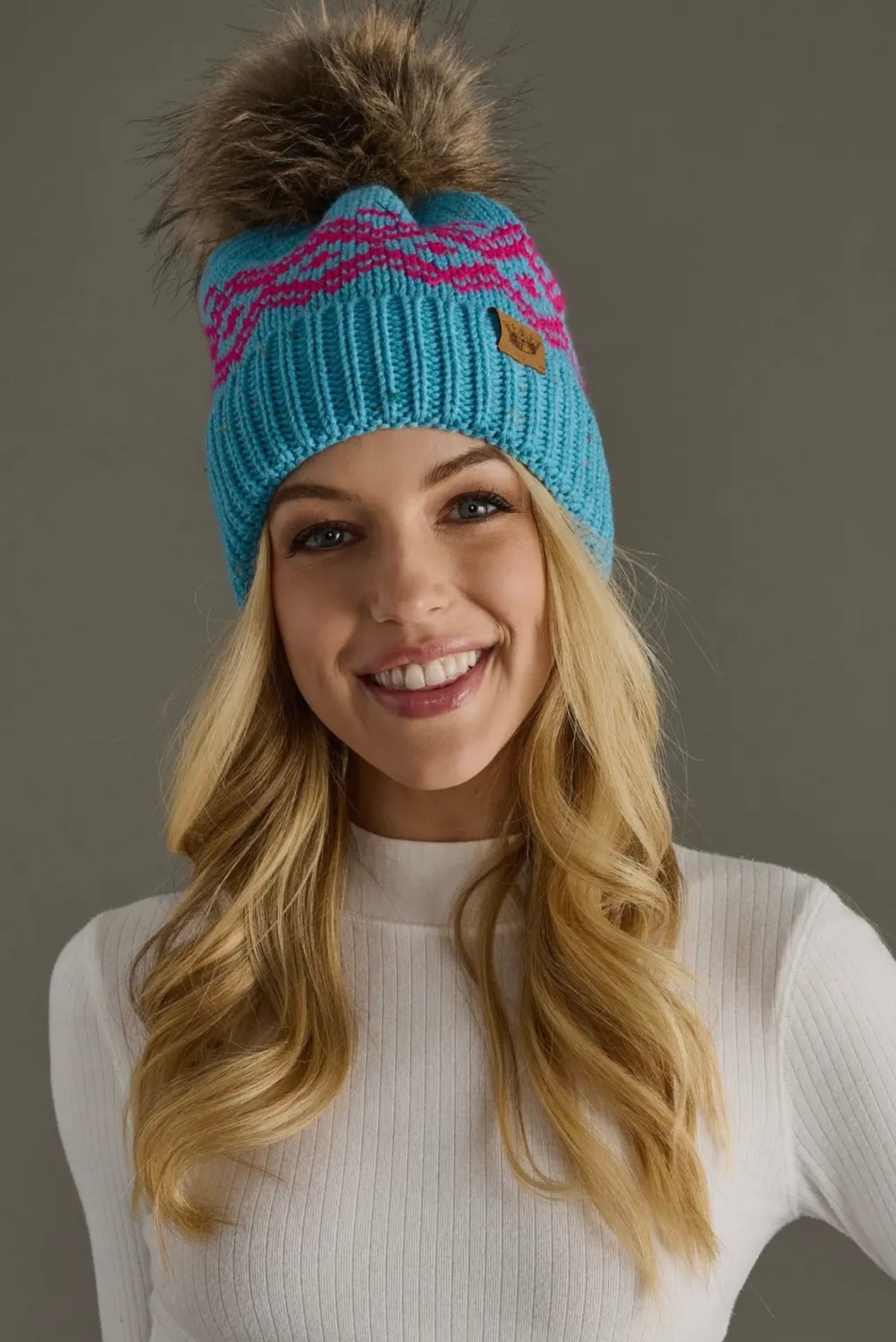 Speckled Knit Hat with Faux Fur Pom