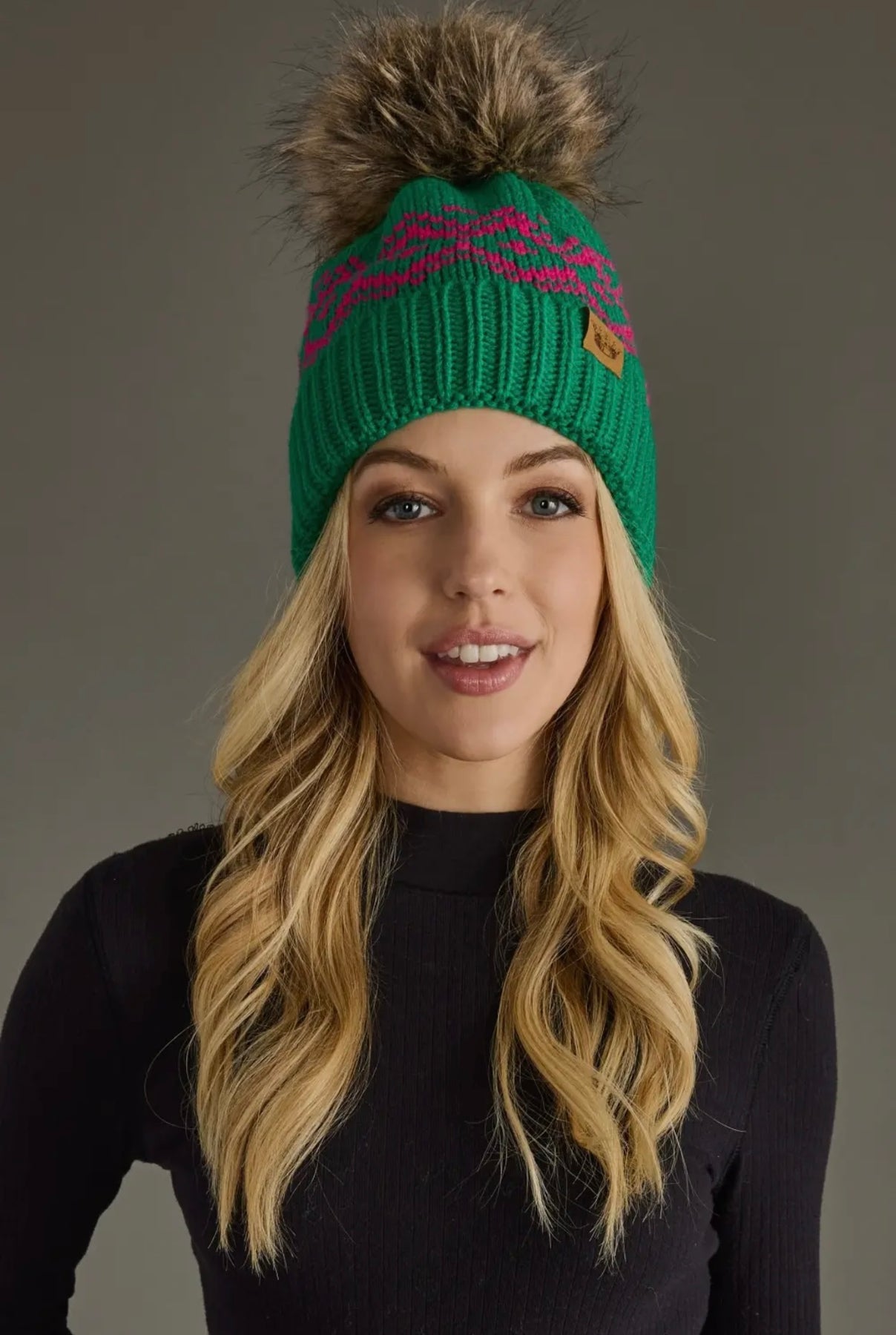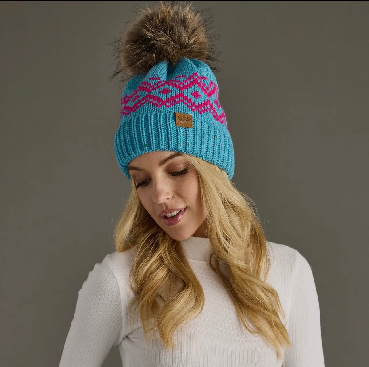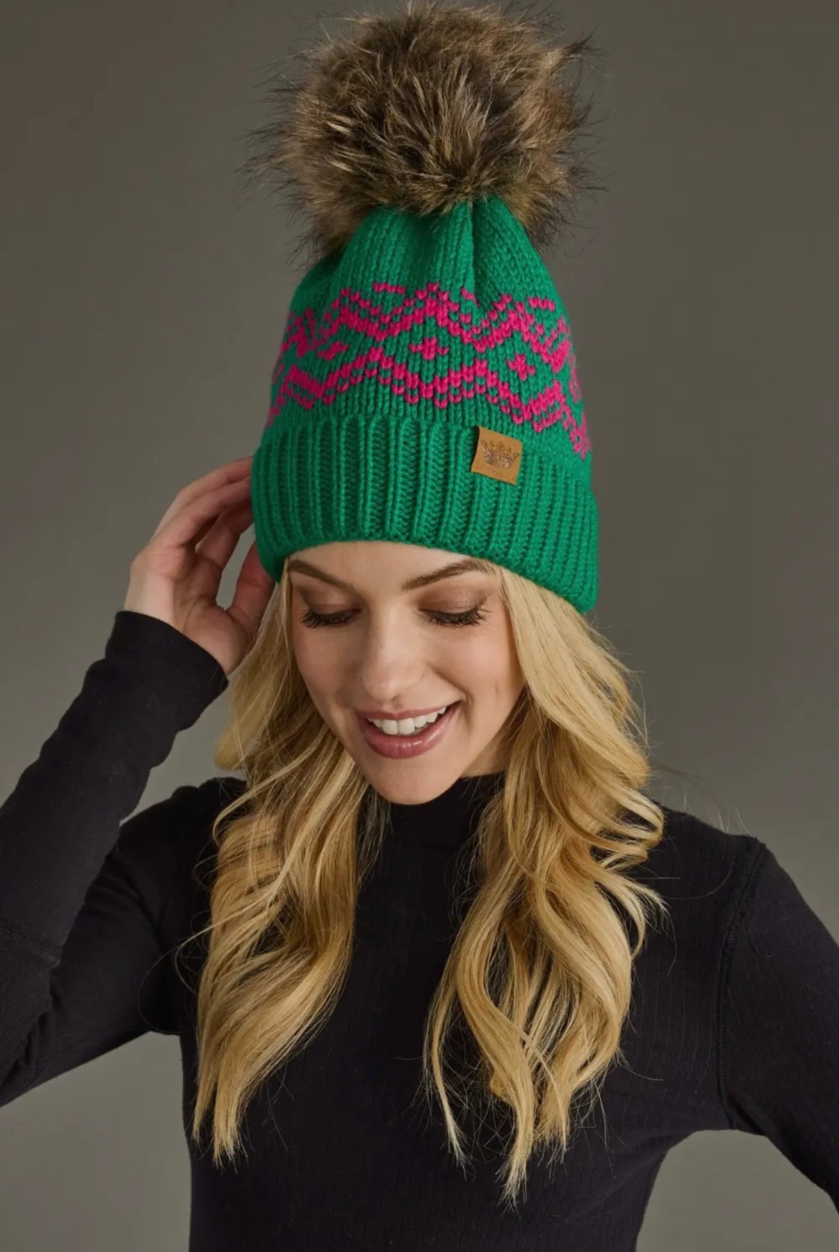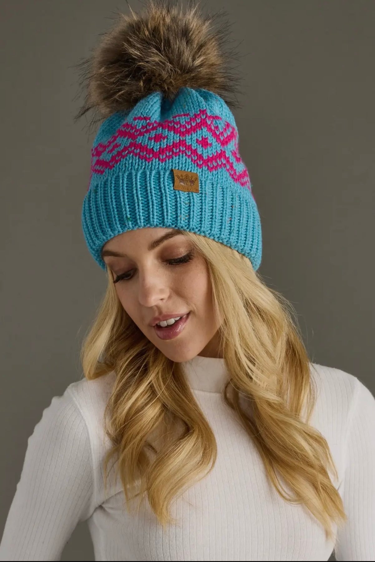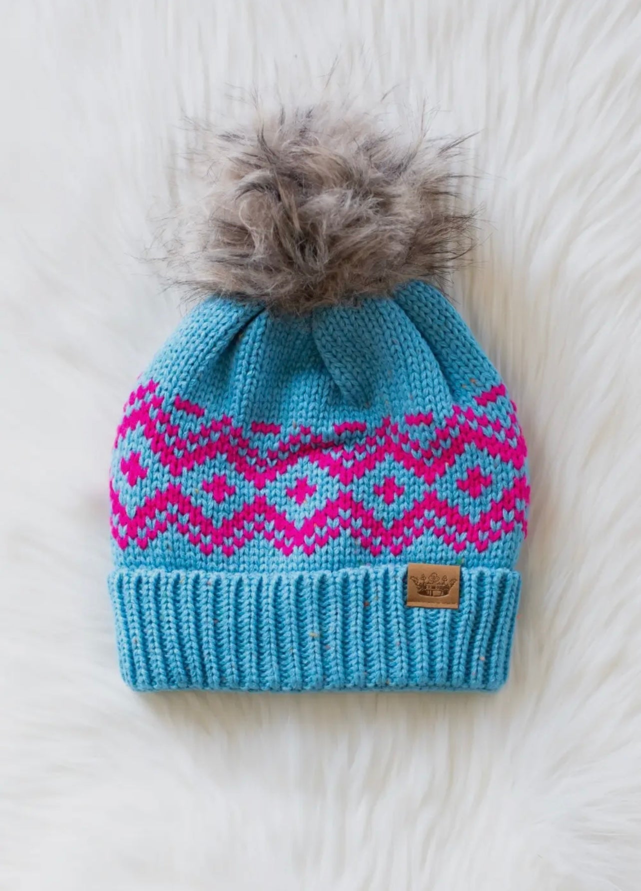 Pink patterned pom hat
