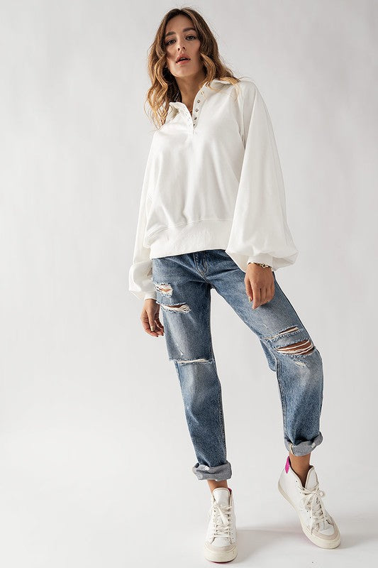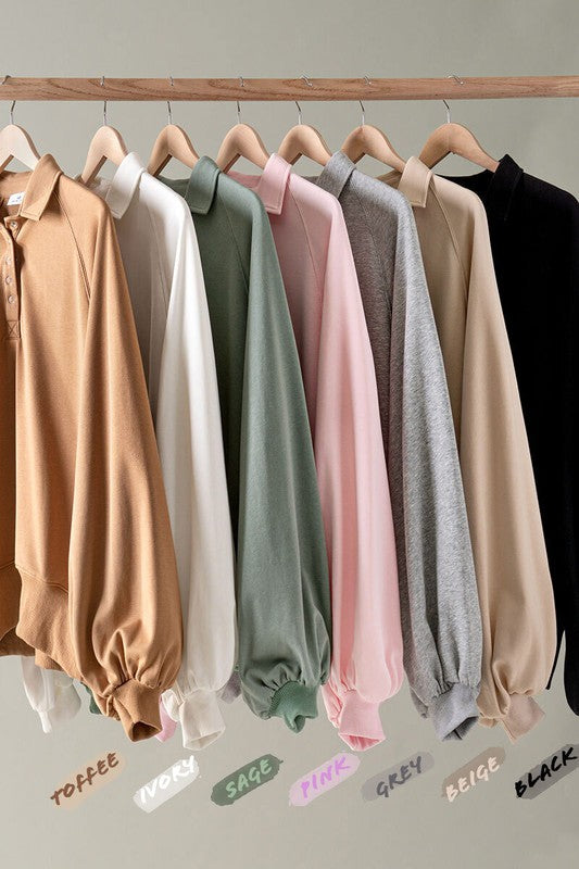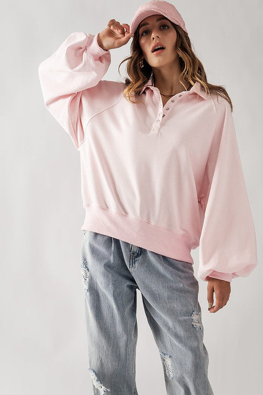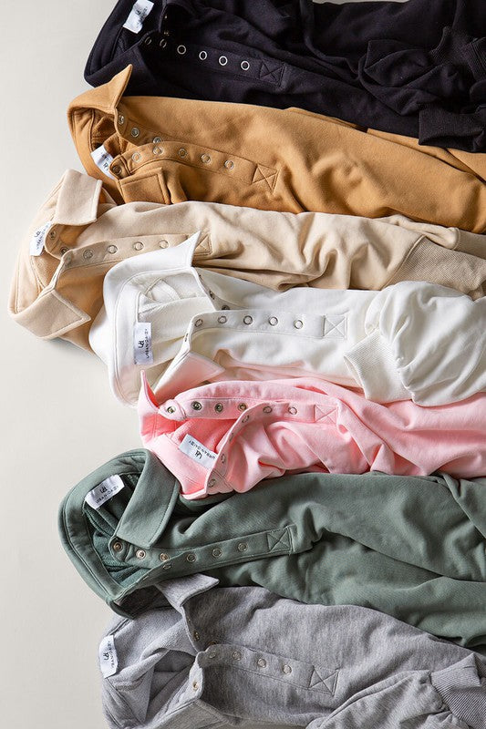 Elevate your casual style with this Soft Touch Quarter Snap Pullover Collared Sweatshirt. Designed for comfort and style, this sweatshirt is made from lightweight French Terry fabric, perfect for layering during cooler days or adding a relaxed touch to any outfit. The quarter snap design adds a modern twist to your wardrobe essentials. Whether you're lounging at home or out for a casual outing, this sweatshirt offers ultimate comfort.